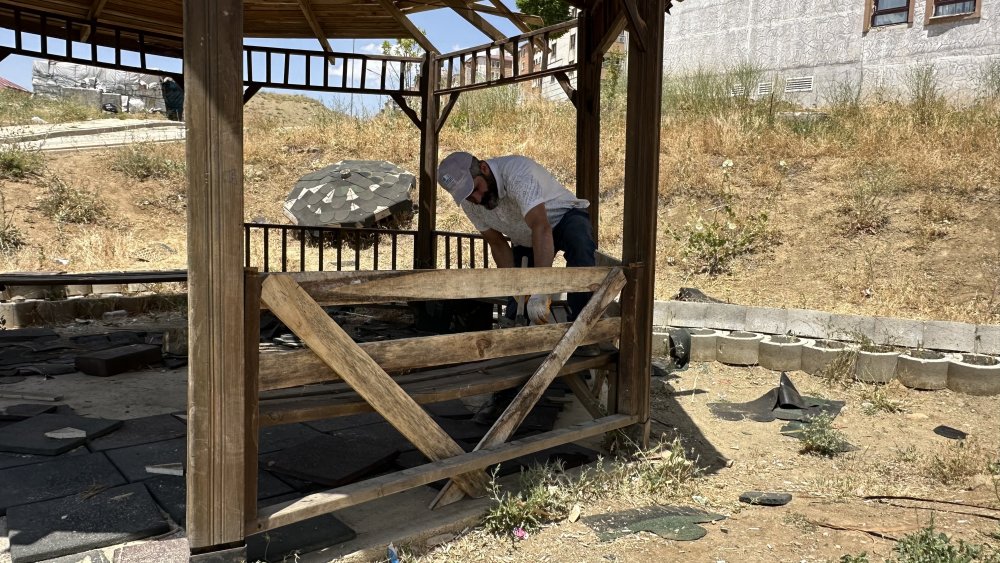 Özellikle çocukların oynadığı parktaki malzemeler kırılırken, ailelerin dinlenmesi için yapılan çardağın üs kısmı ise tamamen tahrip edilirken, logar kapaklarını da söküp götürmüşlerdi.