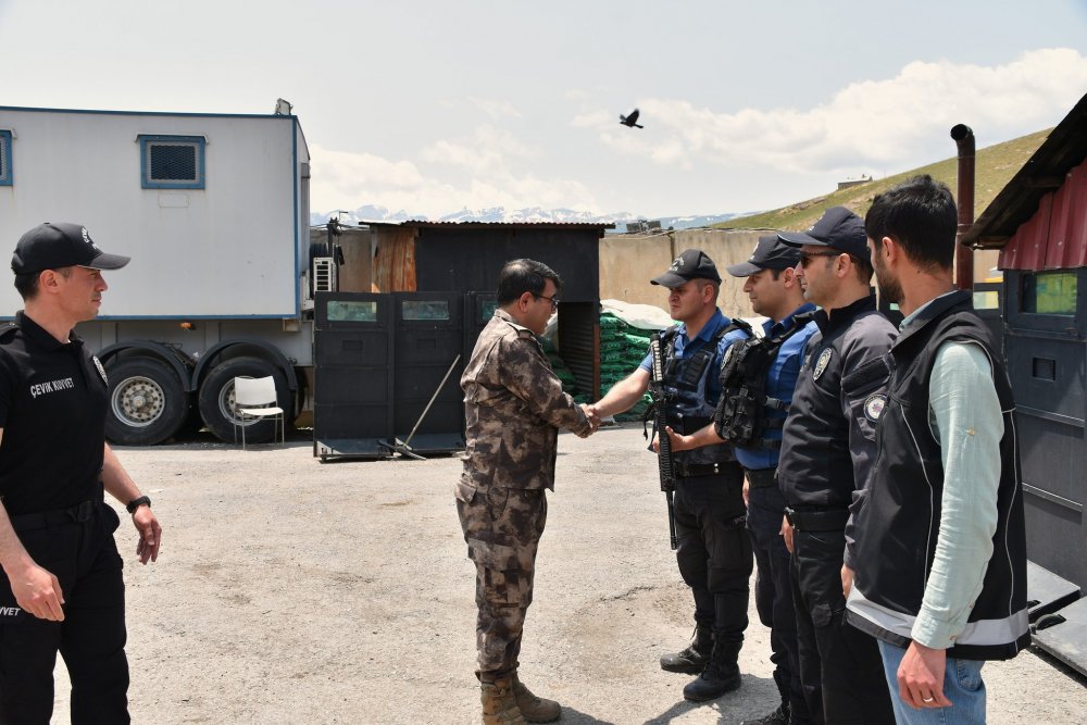 Çeşitli temaslarda bulunmak üzere Yüksekova’ya gelen Müdür Yılmaz, ilçeye giriş yapar yapmaz polis noktalarında görevli personelle bir araya geldi ve tek tek bayramlarını kutladı.