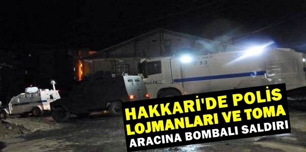 Hakkari'nin Berçelan Mahallesi'de akşam saatlerinde çıkan olaylara müdahale etmeye giden polisin TOMA aracına, Bulak Mahallesi Konak caddesi'nde yüzü maskeli bir grup tarafından el yapımı bombalı saldırı düzenlendi. TOMA aracının altına isabet eden saldırıda ölen yada yaralanan olmazken, kısa süre sonra olay yerine gelen polis ekipleri, gruba göz yaşartıcı bomba ve tazyikli su kullanarak müdahalede bulundu.