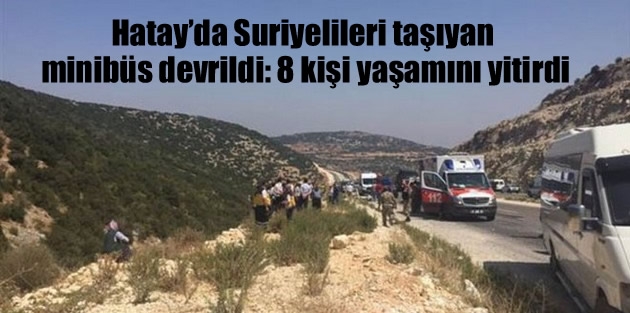 Hatay’da Suriyelileri taşıyan minibüs, lastiğinin patlaması sonucu kontrolden çıkıp şarampole yuvarlandı. Kazada, ilk belirlemelere göre 8 kişi yaşamını yitirdi.