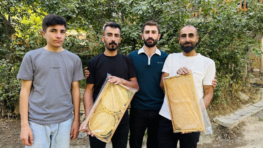Yüksekova ilçesine bağlı Dilektaşı köyünde, aylar önce büyük bir emekle bırakılan kovanlardan bal hasadına başlandı.