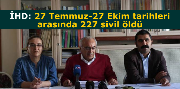 Basın toplantısında konuşan İHD Genel Başkanı Öztürk Türkdoğan, 27 Temmuz 27 Ekim tarihleri arasında toplam 227 sivilin yaşamını yitirdiğini ve tablonun her geçen gün giderek ağırlaştığını söyledi.