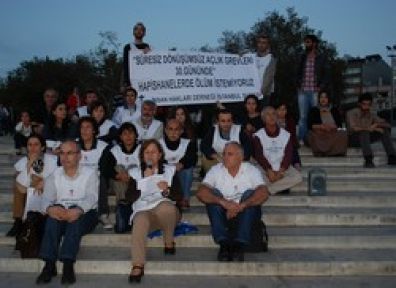 İnsan Hakları Derneği (İHD) İstanbul Şubesi, Türkiye genelinde bulunan cezaevlerinde PKK Lideri Abdullah Öcalan'ın sağlık, güvenlik ve özgürlük koşullarının yaratılması talebiyle başlatılan süresiz dönüşümsüz açlık grevlerine dikkat çekmek amacıyla Taksim Gezi Parkı'nda basın açıklaması yaptı. "Süresiz dönüşümsüz açlık grevi 30. gününde hapishanelerde ölüm istemiyoruz" pankartı açan İHD'liler, sık sık "Cezaevlerinde ölüm istemiyoruz" ve "İnsanlık onuru işkenceyi yenecek" sloganlarını attı. İHD'liler adına açıklama yapan İHD İstanbul Şubesi Başkanı Ümit Efe, hapishanelerin her zaman şiddetinin durmaksızın üretildiği mekanlar olduğuna dikkat çekti. Farklı yıllarda cezaevlerinde girilen ölüm oruçları sonucunda yüzlerce insanın yaşamını yitirdiğini ve yüzlercesinin de sakat kaldığını hatırlatan Efe, bugüne kadar hapishanelerden yükselen çığlıklara, egemenlerin hiçbir zaman kulak asmadığını belirtti. 12 Eylül'den bu yana 35 cezaevinde 300'u aşkın tutsağın PKK Lideri Abdullah Öcalan üzerindeki tecridin kaldırılması için süresiz dönüşümsüz açlık grevine girdiklerini belirten Efe, Türkiye'nin de imzaladığı BM Siyasi ve Medeni Haklar Sözleşmesi'nin bulunan 10. Maddeye "Özgürlüğünden yoksun bırakılan herkes, insani muamele ve insanın doğuştan sahip olduğu insanlık onuruna saygı görme hakkına sahiptir" dikkat çekti.