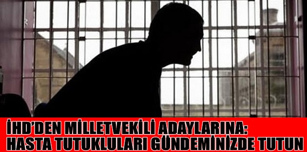 İHD tarafından hasta tutuklulara ilgili bugün yaptığı açıklamada siyasi partilere, hükümete ve bürokratlara seslendi, vekil adaylarının hasta tutukluların gündemde tutmasını istedi.