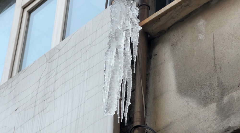 “Yüksekova’da evlerin çatılarında buz sarkıtları ve araçların camları buz tutmuş durumda”