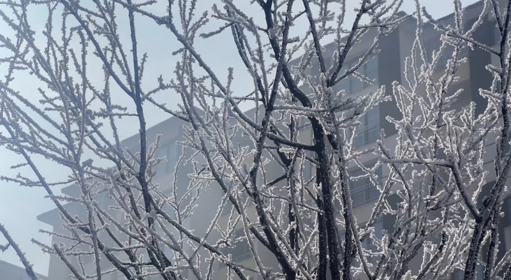 Yüksekova ilçenin etrafını saran dağlar kar altında kalırken; çatılardaki buz sarkıtları, ağaçlarda kırağı ve araçların camları tamamen buzla kaplanıyor.