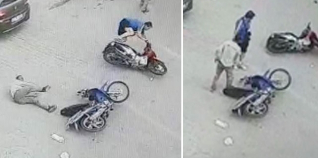 İki motosiklet çarpıştı, yara almayan sürücüler tokalaşıp ayrıldı