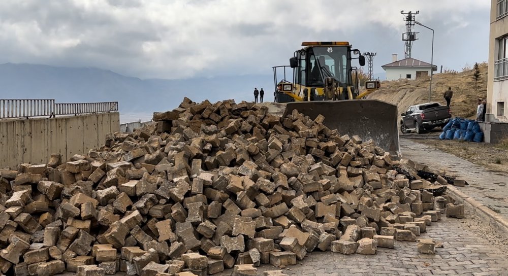 Yüksekova Belediyesi tarafında iş makineleri tarafından yolda bulunan parke taşları yerinde kaldırıp sökülürken, İl özel idaresinin Yüksekova Şantiye Şefliği tarafında diğer kalan çalışmayla yeni görünüme kazandıracak.
