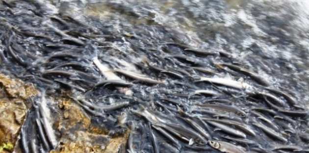 Van Gölü'nde yaşayan tek balık türü olan İnci kefali, Türkiye'nin en büyük gölünün tuzlu ve sodalı suyunda neslinin çoğalması için üreme döneminde tatlı su ağızlarına göç ediyor.