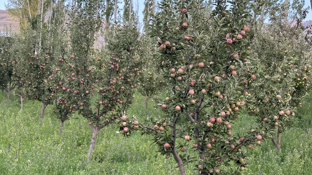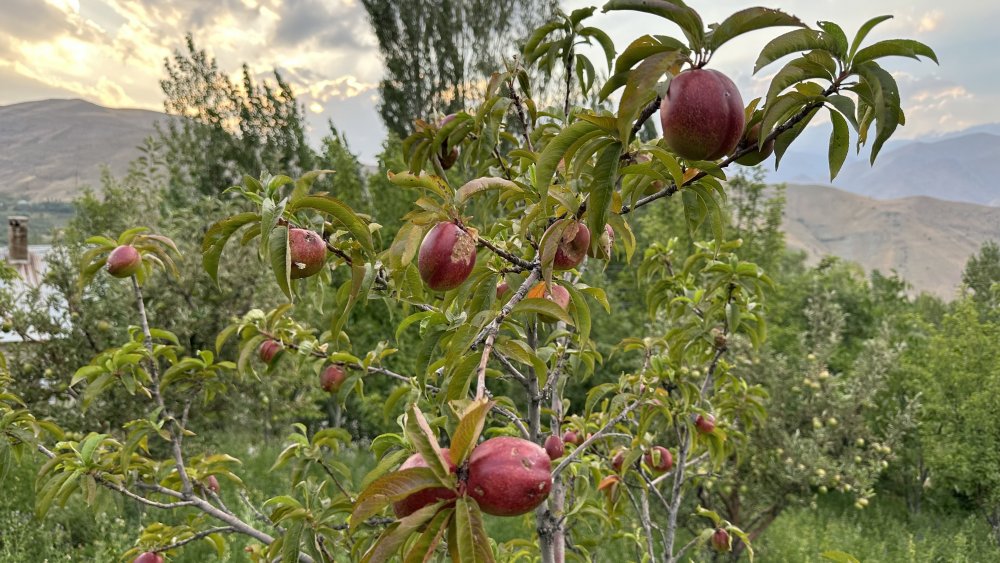 Yüksekova ilçesinin İran sınırında bulunan Esendere Beldesi'ndeki meyve ağaçlarında artan verimlilik çiftçinin yüzünü güldürdü.