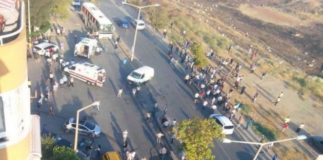 Çevredeki binaların camlarının bile kırıldığı patlamada, servis otobüsünde 8 kişi yaralandı. Yaralılar ambulanslarla çevredeki hastanelere taşındı.