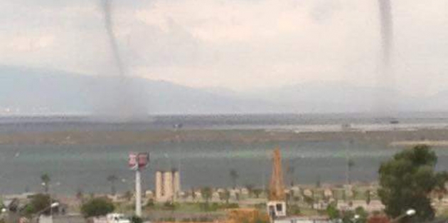 Öte yandan yağmurla birlikte Karşıyaka ilçesi Mavişehir semti açıklarında oluşan iki dev hortum görenleri şoke etti.