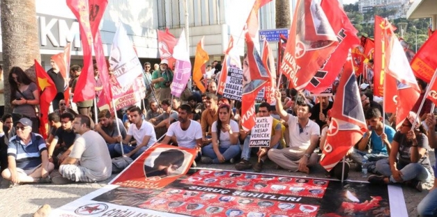 Emniyetin yürütmemesi üzerine kitle basın açıklamasını yürüyüş yapamadan gerçekleştirmek zorunda kaldı. Kurumlar adına basın açıklamasını okuyan DİSK Ege Bölge Temsilcisi Memiş Sarı, AKP politikaları nedeniyle Türkiye'nin iç savaşa sürüklendiğini ifade ederek, Suruç katliamının IŞİD çeteleriyle AKP iktidarının işbirliğini gözler önüne serdiğini dile getirdi.