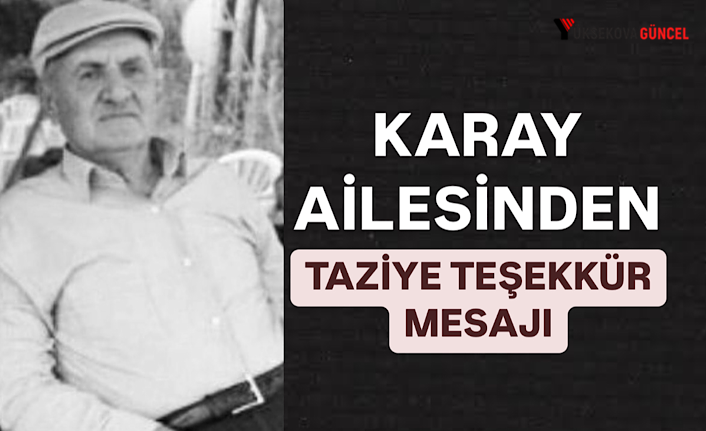 KARAY AİLESİ MESAJINDA, "Tüm eş, dost, akraba ve hemşehrilerimiz gerek cenaze törenine ve gerekse taziyemize gelerek veya telefonla arayarak bizleri bu acı günümüzde yalnız bırakmadılar. Uzaktan yakından cenazemize katılan, taziye ziyaretinde bulunan, mesaj gönderen, telefonla başsağlığı dileyen, Yurt içinde ve Yurt dışında başta İran ve Irak olmak üzere internet aracılığı ile mesajını ileten, definden önce ve sonra taziyemize gelip acımızı paylaşan, tüm kanaat önderlerine, yerel yöneticiler, Milletvekillerine, belediye başkanları, siyasi parti temsilcileri, İmamlar, kurum amirleri, Mahalle Muhtarlarına, gazeteciler, baro başkanları, öğretmenler, sağlıkçılar Türkiye'nin her yerinden dualarını esirgemeyen akrabalarımıza, Maddi ve Manevi desteklerini bizlerden esirgemeyen herkese şükranlarımızı sunarız" İfadeleri kullanıldı.