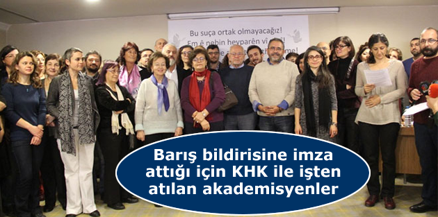 İşten çıkarılanlar arasında Barış İçin Akademisyenler’in “Bu suça ortak olmayacağız” başlıklı bildiriye imza atan akademisyenlerden 41’i de, OHAL kararnamesiyle üniversitedeki görevinden atıldı.