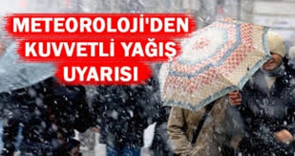 Meteoroloji Genel Müdürlüğü, bugün akşam saatlerinden sonra Trakya ve Kıyı Ege’de başlayacak yağmur ve sağanak şeklindeki yağışların Cuma günü Marmara bölge geneli ile Kıyı Ege’de kuvvetli ve yer yer çok kuvvetli (21-75 kg/metrekare) olmasının beklendiğini açıkladı. İstanbul il genelinde bu gece saatlerinde başlayacak olan yağışın Cuma gün boyunca kuvvetli ve yer yer çok kuvvetli olmak üzere yağmur ve sağanak şeklinde devam edeceği, akşam saatlerinden sonra yüksek kesimlerinde karla karışık yağmur ve kar şeklinde devam edeceği tahmin edildiği belirtildi.