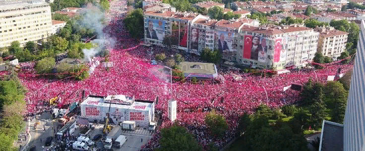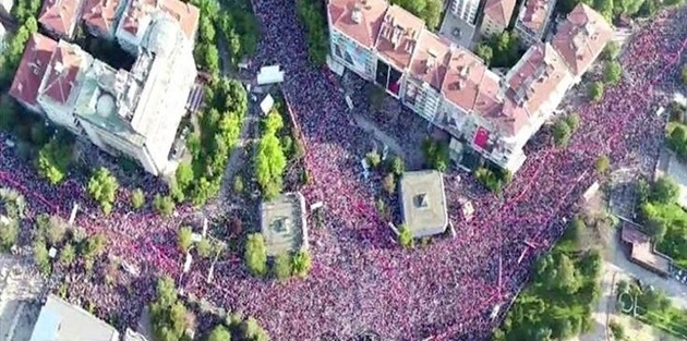 Tandoğan Meydanı’ndan Kızılay’a kadar yürüyen kitle Kızılay trafiğini de kilitledi. Bu sırada karşıdan karşıya yaya geçişini sağlamaya çalışan bir polis memuru kalabalık nedeniyle zor anlar yaşayınca bir kadın, “O kadar şaşırmayın memur bey! Çok çok kalabalığız” diye seslendi. Şimdi gözler İnce’nin seçim kampanyasına son noktayı koyacağı büyük İstanbul mitingine çevrildi. Ankara ise seçim kampanyasına İnce’yi dinlemek için on binlerce kişinin akın ettiği alanda Bahçeli ile nokta koyacak. (Nergis Demirkaya - GazeteDuvar)