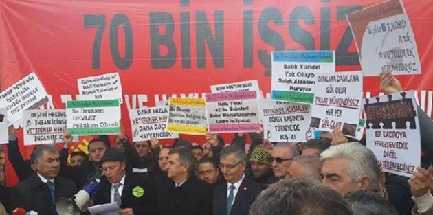 Abdi İpekçi Parkı'nda bir araya gelen Gıda, Su Ürünleri, Ziraat, Balıkçılık Teknolojisi Mühendisleri, Veterinerler ile Teknikerler "70 bin işsiz 20 bin boş kadroya atama bekliyor" yazılı afiş açtı.