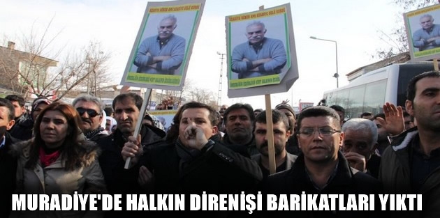 Konuşmaların ardından ellerinde Kürt Halk Önderi Abdullah Öcalan ile fotoğrafları ile yürüyüşe geçen kitlenin barikat kuran polis yürüyüşe izin vermedi. Bunun üzerine eline Kürt Halk Önderi Abdullah Öcalan'ın fotosunu alan HDP Wan Milletvekili Özdal Üçer, DBP Wan İl Eş Başkanı Miraz Çallı, HDP Wan İl Eş Başkanı Veysi Dilekçi, Öcalan'ın posterini taşımanın yasak olmadığını ve bu fotoğraflarla yürümeye kararlı olduklarını söyledi. Polisin barikatı üzerine yolu trafiğe kapatan kitle daha sonra barikatın üzerine yürüdü. Kitlenin kararlı tutumu sonucu polis barikatı kaldırdı. Muradiye Belediyesine kadar yürüyen kitle 'Kadına uzanan eller kırılsın' sloganları attı./Anf