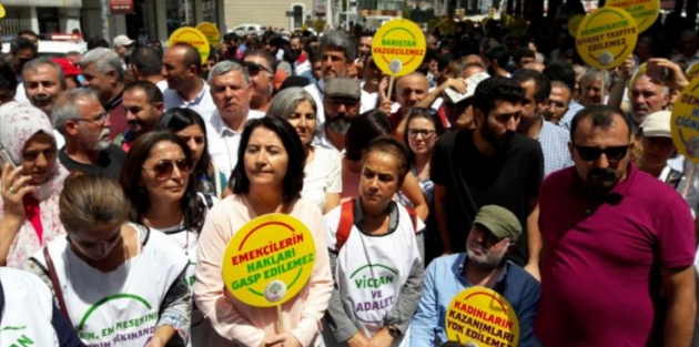 Adalet ve Vicdan Nöbeti için İstanbul’da bugün HDP milletvekilleri Garo Paylan, Sırrı Süreyya Önder, Filiz Kerestecioğlu ve Hüda Kaya ile EMEP Genel Başkanı Selma Gürkan, birçok sendika temsilcisi ve partililer Kadıköy HDP ilçe binasından, ‘Direne direne kazanacağız, hak hukuk adalet, kurtuluş yok tek başına ya hep beraber ya hiçbirimiz’ sloganlarıyla Yoğurtçu Parkı’na yürüdü.