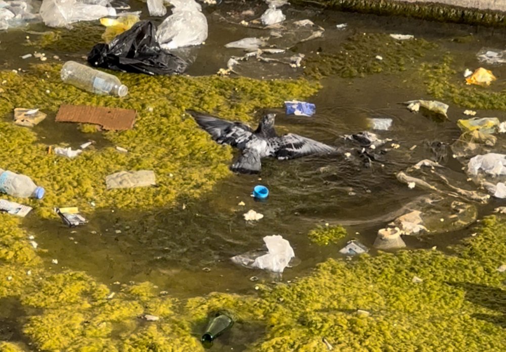 Olay yerine sevk edilen itfaiye ekipleri, suyun içinde çaresizce çırpınan güvercini titiz bir çalışmayla dereden çıkardı.