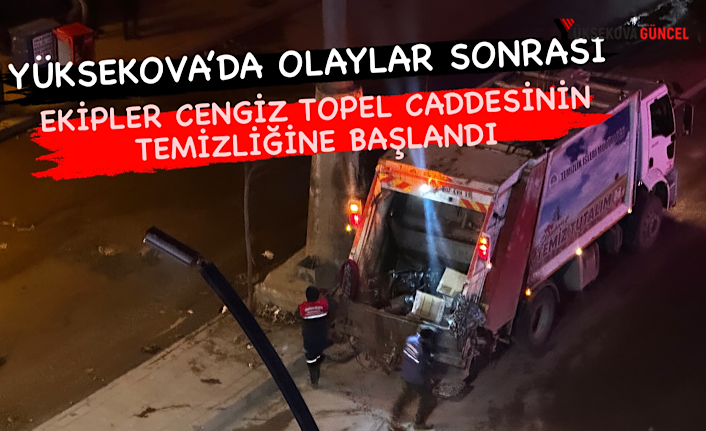 Yüksekova ilçesinde iftar sonrası yaşanan olaylar sonrası, Belediye ekipleri tarafından Cengiz Topel Caddesinde temizliğine başlandı.