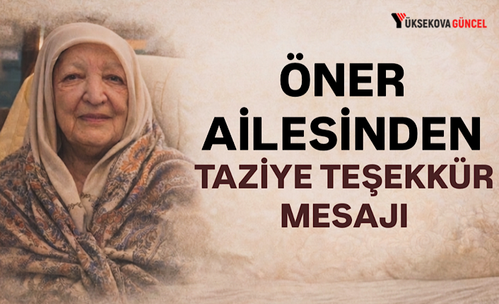 Yüksekova’nın tanınan ailelerinden Öner ailesi, geçtiğimiz günlerde ebediyete irtihal eden ailenin büyüklerinden Mediha Öner’in vefatı dolayısıyla bir teşekkür mesajı yayımladı.