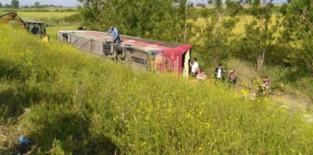 Çanakkale’nin Gelibolu ilçesinde tur otobüsü devrildi.