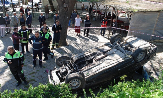 Otomobil çay bahçesinin avlusuna devrildi: 1 yaralı