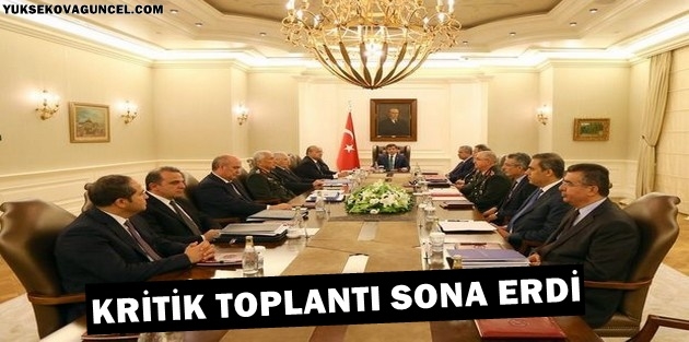 Basına kapalı olarak gerçekleştirilen toplantıya, Başbakan Ahmet Davutoğlu, Başbakan Yardımcısı ve Hükümet Sözcüsü Bülent Arınç, Başbakan Yardımcısı Yalçın Akdoğan, İçişleri Bakanı Sabahattin Öztürk, Milli Savunma Bakanı Vecdi Gönül, Genelkurmay Başkanı Orgeneral Necdet Özel, Genelkurmay İkinci Başkanı Orgeneral Yaşar Güler, Kara Kuvvetleri Komutanı Orgeneral Hulusi Akar, Jandarma Genel Komutanı Orgeneral Abdullah Atay, Başbakanlık Müsteşarı Kemal Madenoğlu, MİT Müsteşarı Hakan Fidan, Dışişleri Bakanlığı Müsteşarı Feridun Sinirlioğlu, Başbakanlık Başmüşaviri Hatem Ete, Başbakanlık Dışişleri Başdanışmanı Kemal Ökem, Emniyet Genel Müdürü Celalettin Lekesiz katıldı.