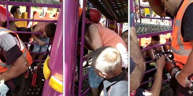 İskender Mahallesi Gaziler Parkı'nda arkadaşlarıyla oynayan ilkokul 3'üncü sınıf öğrencisi Yunus Emre Çelebi, saat 16.30 sıralarında kaydıraktaki demir parmaklıklara başını sıkıştırdı. Tüm çabasına rağmen başını kurtaramayan Yunus Emre Çelebi, önce arkadaşlarından yardım istedi. Onlar da başarılı olamayınca çevredekiler itfaiyeye haber verdi.