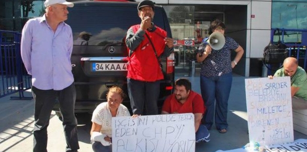 CHP'li Sarıyer Belediyesi'ndeki sosyal haklarını talep ettikleri için 4 ay önce işten çıkartılan 5 işçi, direnişlerinin 130'uncu gününde CHP'li yöneticilerince çağrılan polis ekipleri tarafından saldırıya uğramalarını yaptıkları basın açıklamasıyla protesto etti. CHP İstanbul İl Başkanlığı önünde açıklama yapan işçiler, "İşçiyiz kazanacağız" pankartı açtı. İşçiler adına konuşan Güven Darcanlı, CHP'nin halkçı söylemleri kullanarak halktan oy istediğini ancak CHP'nin bir düzen partisi olduğunu söyledi.