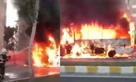 Şehiriçi yolcu otobüsü seyir halinde alev aldı