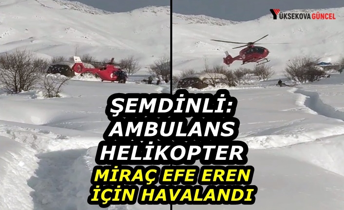 Şemdinli ilçesinde yüksek ateş şikayetinden dolayı rahatsızlanan 7 aylık Miraç Efe Eren bebek, helikopter ambulans ile hastaneye kaldırıldı.