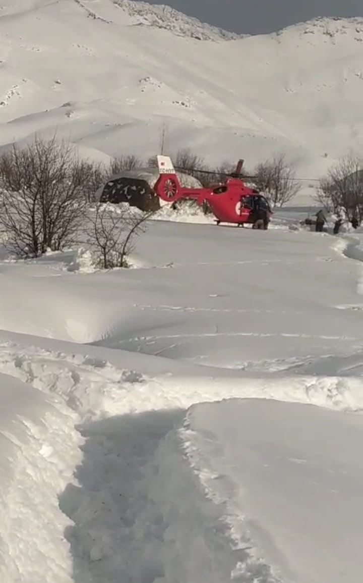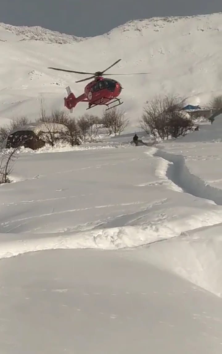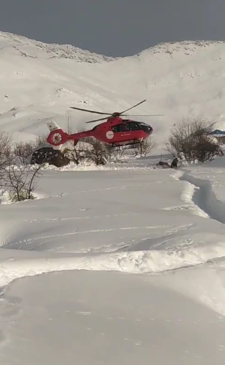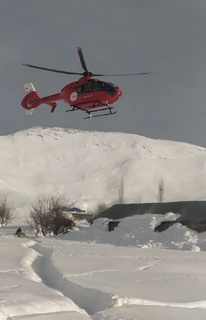 Çığ tehlikesinin olduğu ve yolların açılamayacağı bilgisi üzerine 112 Komuta Kontrol Merkezi tarafından bölgeye helikopter ambulans yönlendirildi.