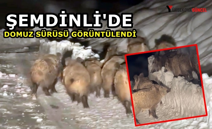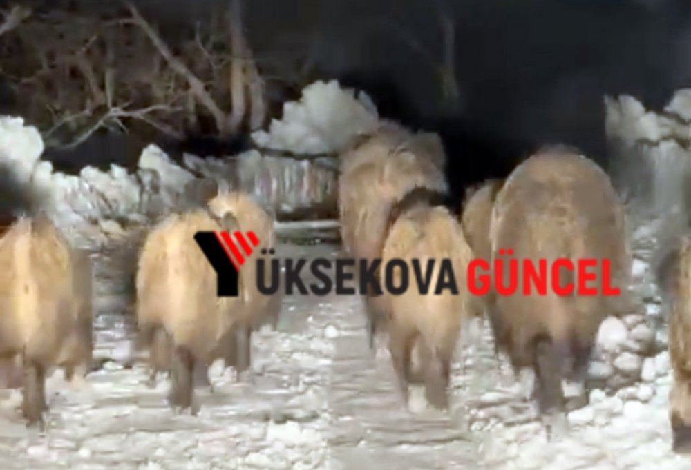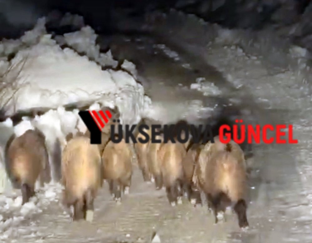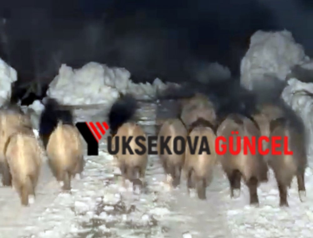 Şemdinli ilçesinde yola inen domuz sürüsü, vatandaşlar tarafından cep telefonuyla kaydedildi.