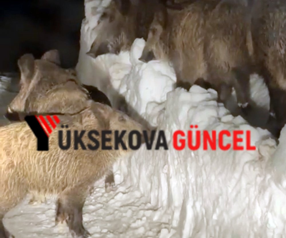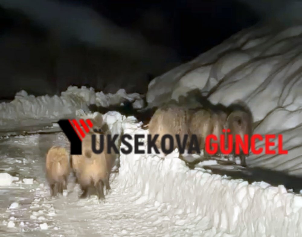 Vangölü Elektrik Dağıtım A.Ş. (VEDAŞ) Şemdinli İşletme Şefi Erkan Çakırbeyli ve Arıza Onarım Bakım ekibi, Alan köyünde elektrik arızası onarımından dönerken, domuz sürüsü ile karşılaştı.