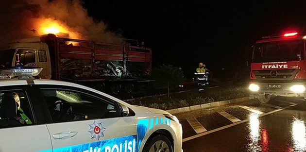 Yangın, -Ankara karayolu 14. kilometresi Gürgendağı mevkisinde saat 00.30'da meydana geldi. Edinilin bilgiye göre, Giresun'dan Ankara'ya içinde plastik ve alüminyum malzeme ile hurda akülerinde bulunduğu hurda malzeme götüren Mehmet Teke idaresindeki 15 ES 431 plakalı kamyonda, seyir halindeyken yangın çıktı. Kamyonun üzerinden dumanların yükseldiğini gören Samsun Emniyet Müdürlüğü Bölge Trafik Şube Müdürlüğü ekipleri itfaiyeden yardım istedi. Kamyon şoförü aracı yolun kenarına çekerken, Samsun Büyükşehir Belediyesi İtfaiye Daire Başkanlığı ekipleri yangına müdahale ederek söndürdü. Yangının kamyonda bulunan hurda akülerden çıktığı tahmin ediliyor. Soruşturma devam ediyor./İha