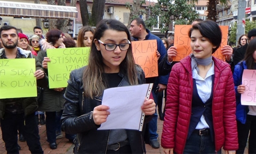 Geçen yıl Eylül ayında Çaycuma İlçe Emniyet Müdürlüğü'nde görev yapan polis memuru O.Ç.'nin cinsel tacizine maruz kalan Bilge A. (18) da eyleme katıldı. Kendisinin geçen yıl benzer bir olay yaşadığını söyleyen Bilge A., "Ama ben şanslıydım. Benim 3 yaşındaki ve 4 yaşındaki kardeşlerim benim kadar şanslı değildi. Onların ellerinden hayalleri gençlikleri çocuklukları çalındı. Onların ellerinden oyuncak bebekleri alındı. Çocuk istismarına göz yumanlar en az onlar kadar suçludurlar. Tecavüzü istismarcı diyerekten kibarlaştırmaya çalıştılar. Lakin bunun adı düpedüz cinayettir, çocuk cinayetidir. Bir kereden bir şey olmaz diyerek tecavüzü meşrulaştırmaya çalıştılar. 9 yaşındaki kız çocukları evlenebilir diyerek halkı çocuk gelinlere özendirmeye çalıştılar. Adalet elbet bir gün tecelli eder ancak yasalarımız yeterli değil" diye konuştu.