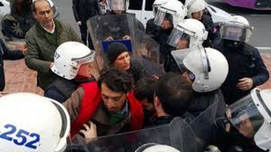 İstanbul'da, Beşiktaş Sait Çiftçi Devlet Hastanesi önünde toplanan Dev Sağlık-İş Sendikası üyeleri, taşeron işçilere kadro yalanına ve kıdem tazminatının gaspına karşı Beşiktaş Kartal Heykeli önüne yürüyüş yapmak istedi. "Özel sözleşmeli personel değil kadrolu işçi olmak istiyoruz" pankartını açan işçilerin yürüyüşü bir süre sonra polis barikatı ile engellendi.