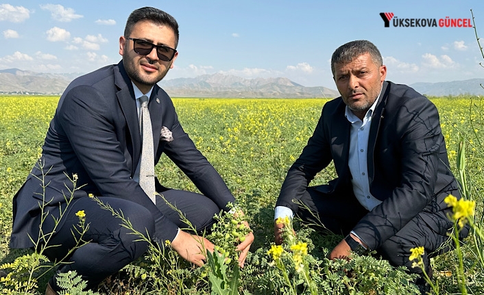 Yüksekova Ziraat Odası Başkanı Perviz Geçirgen, nohut ekimi yapıldığı 50 dönümlük arazide inceleme yaparak Abdülbakir Çekik isimli çiftçiden bilgi aldı.