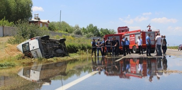 Gevaş'tan Van merkez istikametine seyirhalinde olan malzeme yüklü olan 36 ABB 826 plakalı minibüs sürücüsünün, ıslak zeminde direksiyon hakimiyetini kaybetmesiyle takla attı.