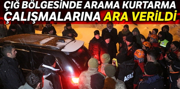 Bölgede incelemelerde bulunarak, buradaki vatandaşlara da ‘geçmiş olsun' dileklerini ileten Bakan Soylu, “Üst üste 2 çığ felaketi yaşadık. Geçmiş olsun, başımız sağ olsun, Allah rahmet eylesin. Biraz önce olay yerine de gittik. Oradaki manzarayı da tekrar teyit ve tespit ettik. Arkadaşlarımızla yaptığımız değerlendirmede bu akşam arama kurtarmayı durdurmaya karar verdik. Yeni bir çığ tehlikesinin olabileceği konusunda bir değerlendirme yapıldı. Yeni bir risk alınmaması konusunda bu karar alındı. Arama kurtarma ekibimiz burada ve çığ konusundan da yetkin. Erzurum, Bitlis ve Muş'tan gelen ekiplerimiz var, aynı zamanda jandarmadan arama kurtarma ekibi intikal etti. Yarın sabah itibariyle genel bir değerlendirme yapıldıktan sonra arama kurtarmaya başlanacak. Şuana kadar hem adli tıpa intikal eden hem de bizim teyit ve tespit edebildiğimiz vefat eden sayımız 29. 3 kişinin de olay yerinde olduğunu değerlendiriyoruz. Daha doğrusu görgü tanıklarına göre değerlendiriyoruz. İş makinesinin altında kaldığını söylüyorlar. Şu ana kadar isimli teyit edebildiğimiz, adli tıp kurumuna ulaştığını düşündüğümüz 29 evladımız şehit oldu. Allah rahmet etsin, Allah mekanlarını cennet etsin. Arama kurtarmayla ilgili sabah tekrar bir durum tespiti yapılacak. Dün gece eksi 24-25 derecede arkadaşlarımız cep telefonu bataryalarının donduğunu söylüyorlar. Onun için sabah tekrar riskler minimize edilip adım atılacaktır. Dün şehit olanlar buna dahil değildir” dedi.