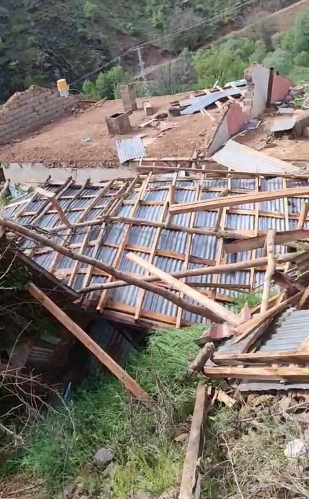 Şemdinli ilçesinde yaşanan şiddetli fırtına, Günyazı köyünde büyük hasara yol açtı. Fırtına, evlerin ve odunlukların çatılarını yerinden sökerken, çok sayıda ağacın da kırılmasına neden oldu.