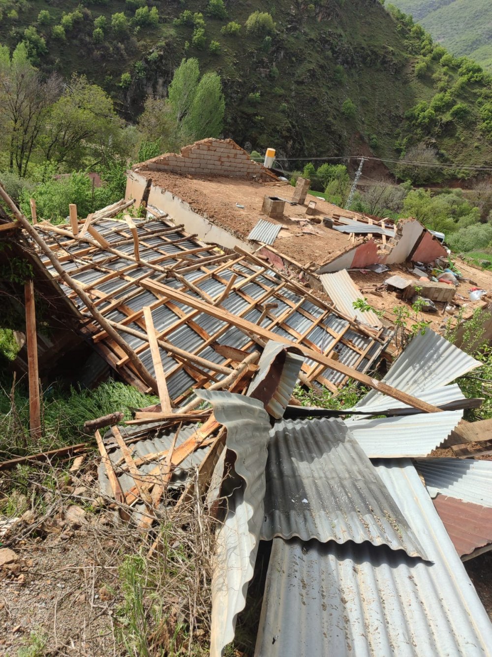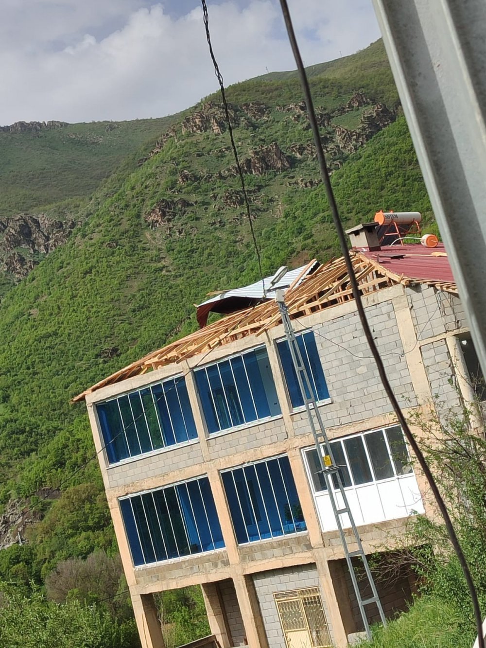 Şemdinli ilçesine bağlı Günyazı (Bebap) köyünde, şiddetli fırtına nedeniyle evlerin ve odunlukların çatıları uçarken, birçok ağaç da zarar gördü.
