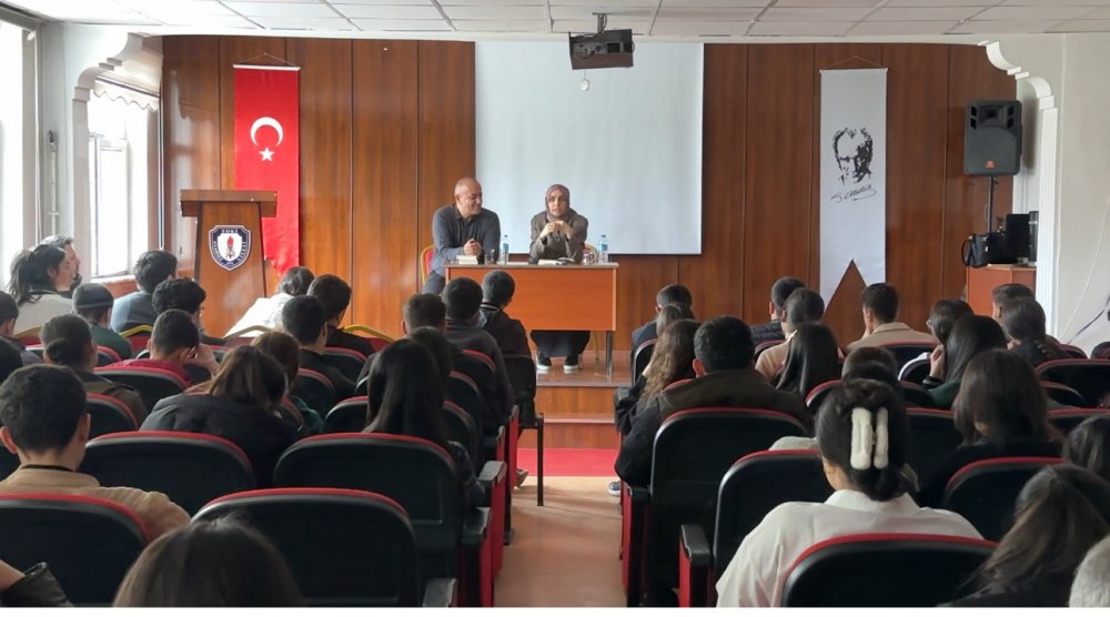 Söyleşide öğrencilerle buluşan Yazar Sibel Oğuz kitabının içeriği hakkında konuşup önemli anekdotlar aktardı.
