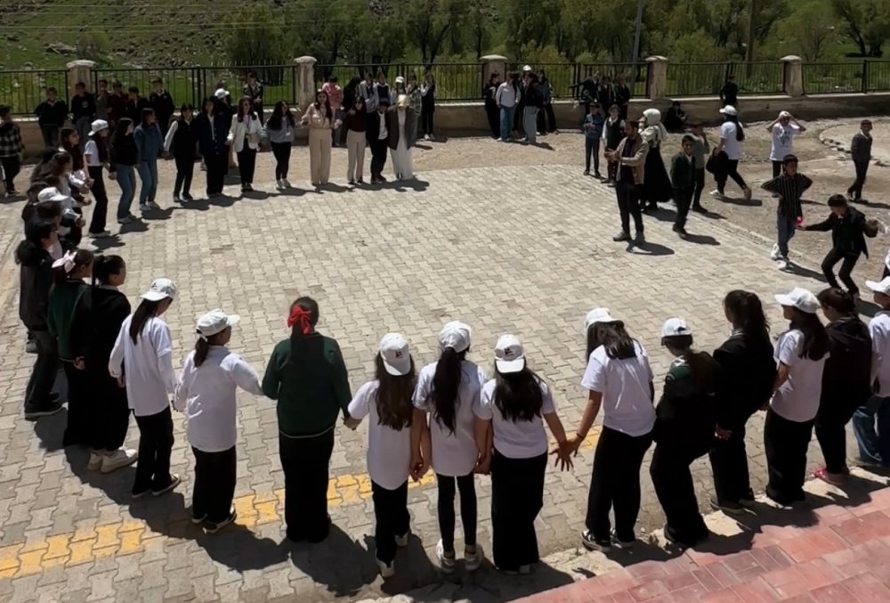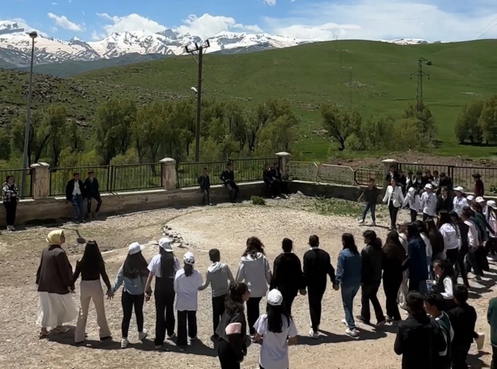 Yüksekova ilçesinin Cilo Dağı'na yakın Suüstü (Şakitan) köyündeki okulun öğretmen ve öğrencilerinin halay çekmesi güzel görüntüler oluşturdu.