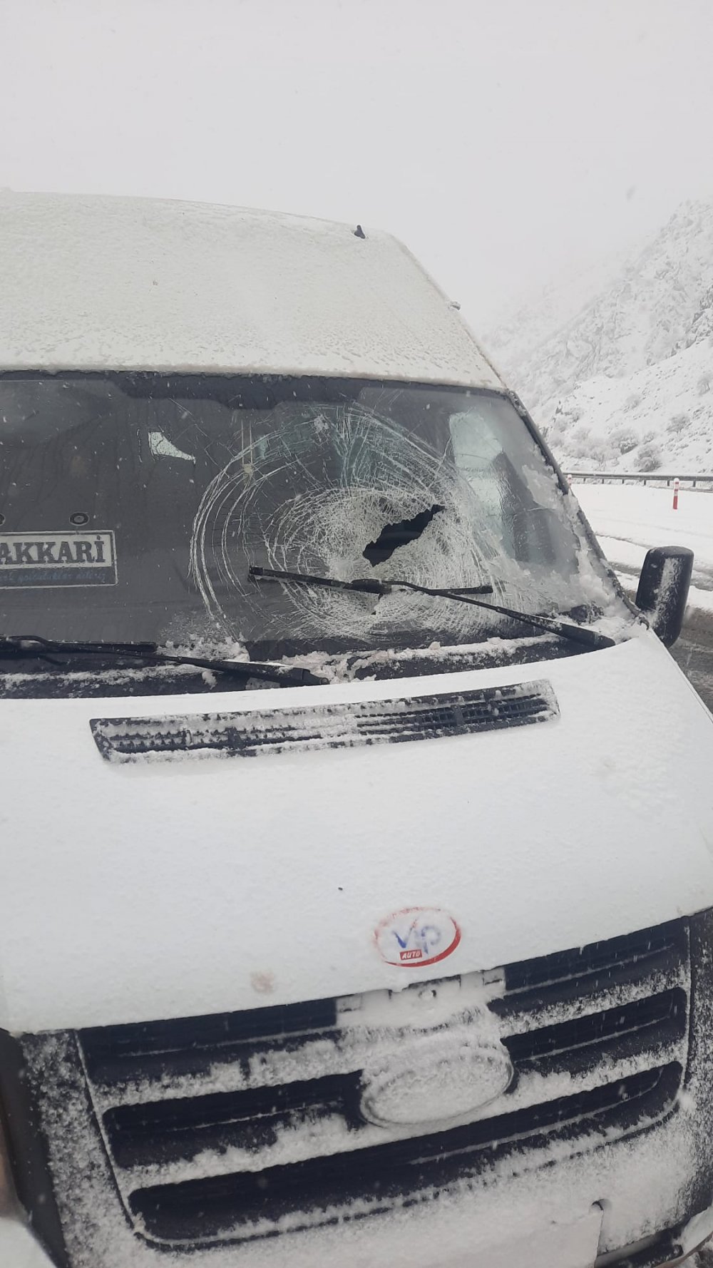 Yüksekova Yeniköprü mevkinde seyir halinde olan yolcu minibüsüne dağ düşen kaya parçaları ön camını kırarken, içinde bulunan 10 yolcu ölümden döndü.Yaşanan duruma tepki gösteren Yüksekova Şoförler ve Otomobilciler Esnaf Odası Başkanı Selami Durna, “Yeni köprü tüneli acilen geçişlere açılmalı” dedi.