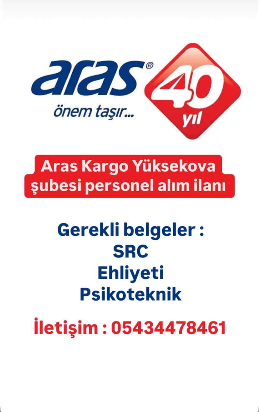 Yüksekova Aras Kargo Şubesi Personel alacağını duyurarak, gerekli belgelere sahip personel işe alınacak.