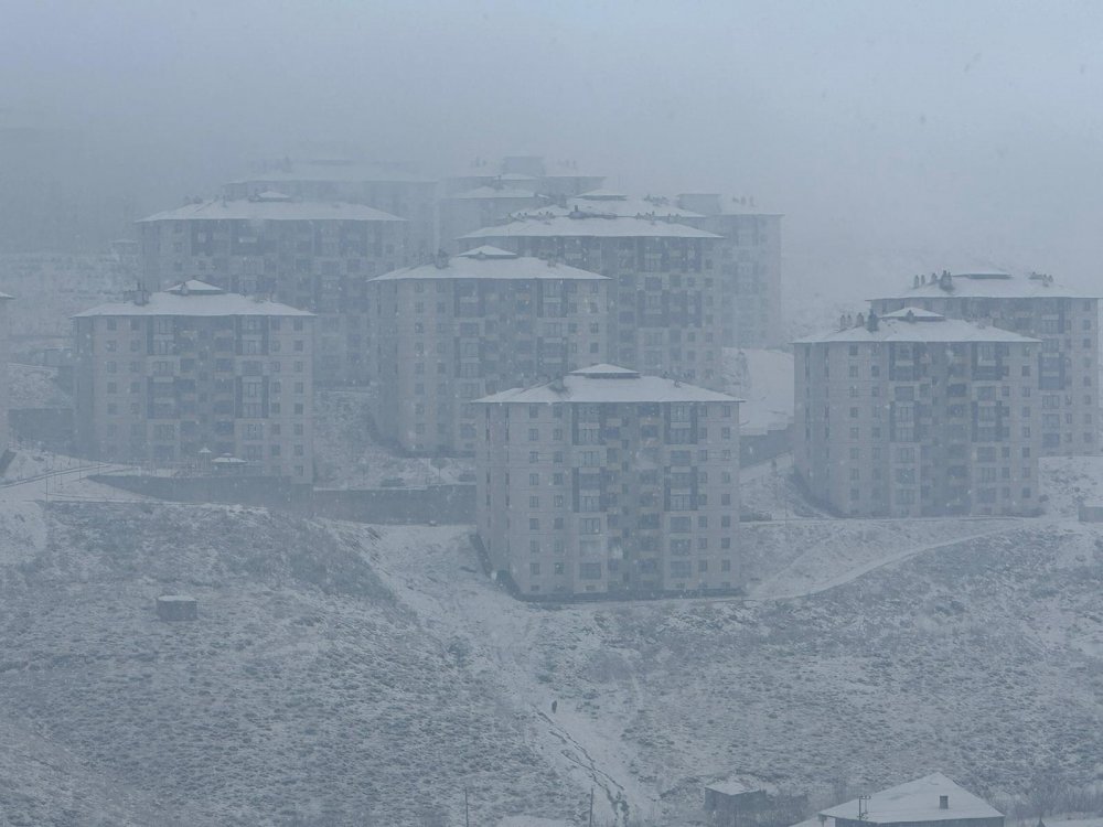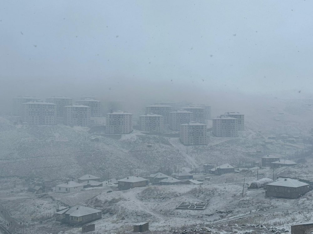 Yüksekova ilçesinde etkili olan kar yağışı ilçe merkezini beyaza bürünürken, yoğun sis yer yer 10 metreye kadar düştü.